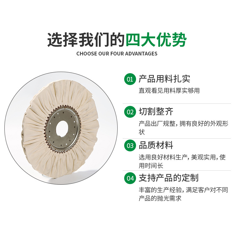 麻輪 劍麻輪 麻輪廠 拋光麻輪 麻輪布輪 拋光布輪 布輪 麻布輪采用高強(qiáng)全樹脂砂布為原材料,使用高強(qiáng)粘度樹脂膠,產(chǎn)品質(zhì)量穩(wěn)定,外觀美觀。適用行業(yè)非常廣泛,可用于各類金屬、非金屬產(chǎn)品表面研磨、拋光。