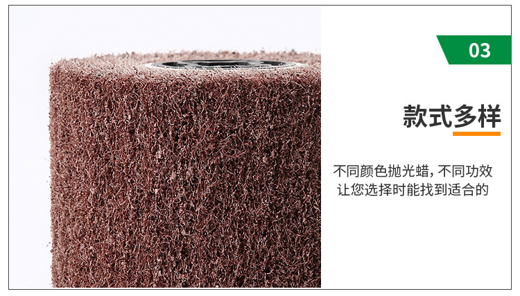 拋光平面拉絲輪-強力手提圓形拉絲輪-尼龍輪-拉絲輪廠家適于要求精密且細致的工作,研磨滑順不產生高壓而留下黑斑,減少瑕疵,不改變工件原重量,對于不銹鋼、鈦合金等材料都能發揮較好的效果。拋磨后的光亮度,很迎合外商對于產品亮度的要求。