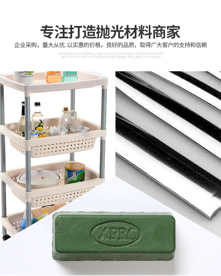 XPRC青臘A-8的一般情況下用不同的顏色表示不同品種的拋光蠟,避免使用時混亂。高含量的磨料可以加速整個拋光過程。這個過程是拋光蠟拋光輪表面移動而使材料變得光滑。